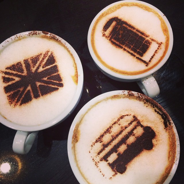 Check out the cool coffee stencil art. Feels just like being in London!